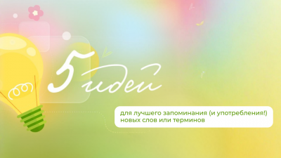 5 идей. Как запомнить новые слова и термины? 14.03.2026 Превращаем повторение терминов в увлекательную игру. Смотрите примеры его использования и предлагайте свои идеи. Самые интересные и эффективные варианты мы