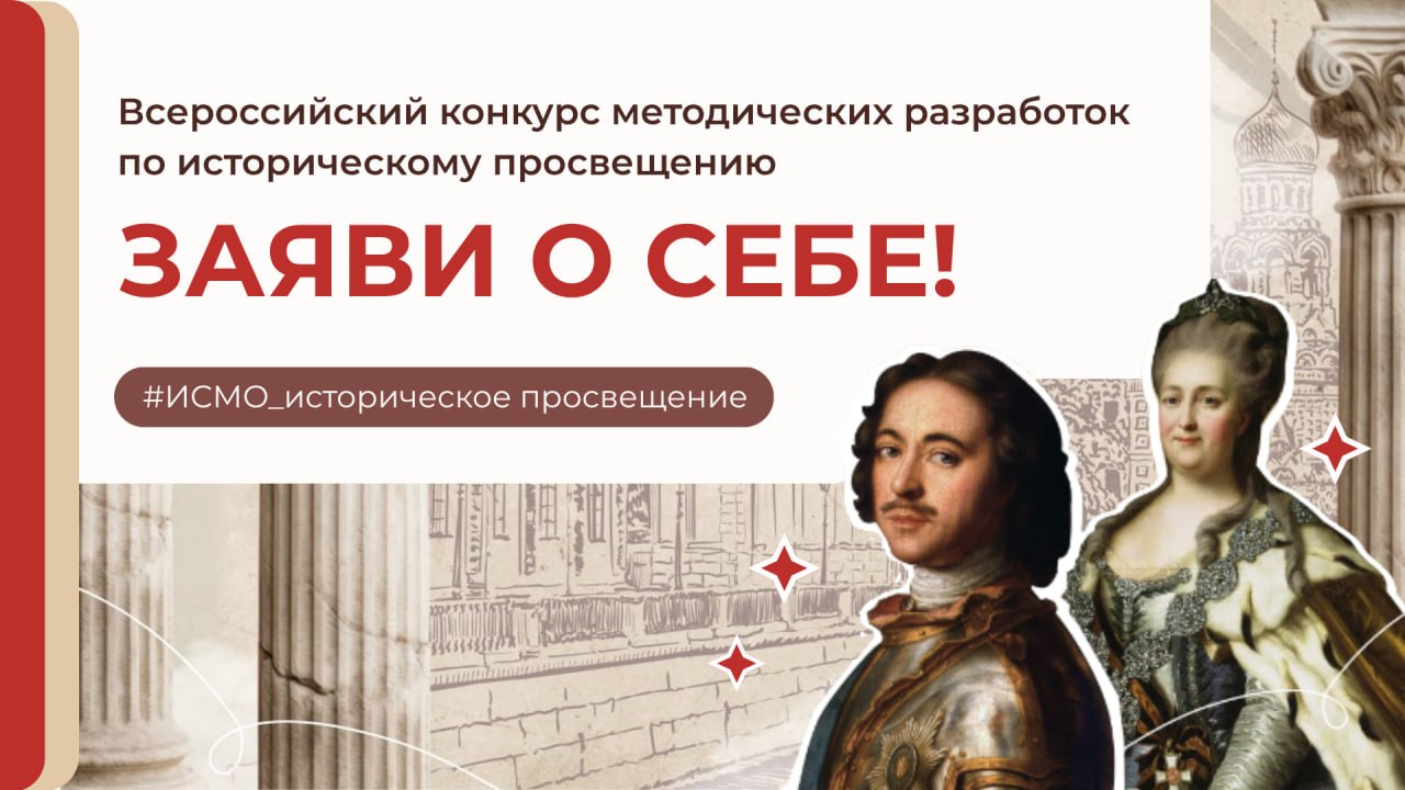 Попадите в число лучших! 10.04.2026 Успейте подать заявку до 30 июня на Федеральный конкурс методических разработок по историческому просвещению в системе общего образования. Участие в конкурсе —